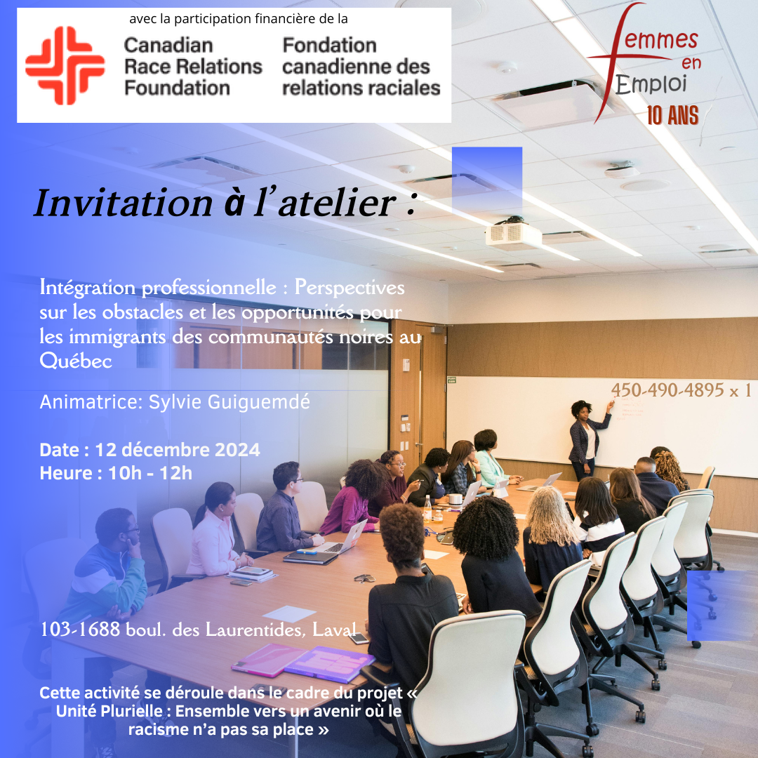 L’intégration professionnelle des immigrants des communautés noires au Québec représente une réalité complexe, caractérisée par des défis importants, mais aussi par des opportunités encourageantes. Cet atelier a pour objectif de vous faire découvrir les enjeux auxquels ces populations sont confrontées, tout en explorant les leviers et les stratégies qui peuvent faciliter leur inclusion socio-économique.