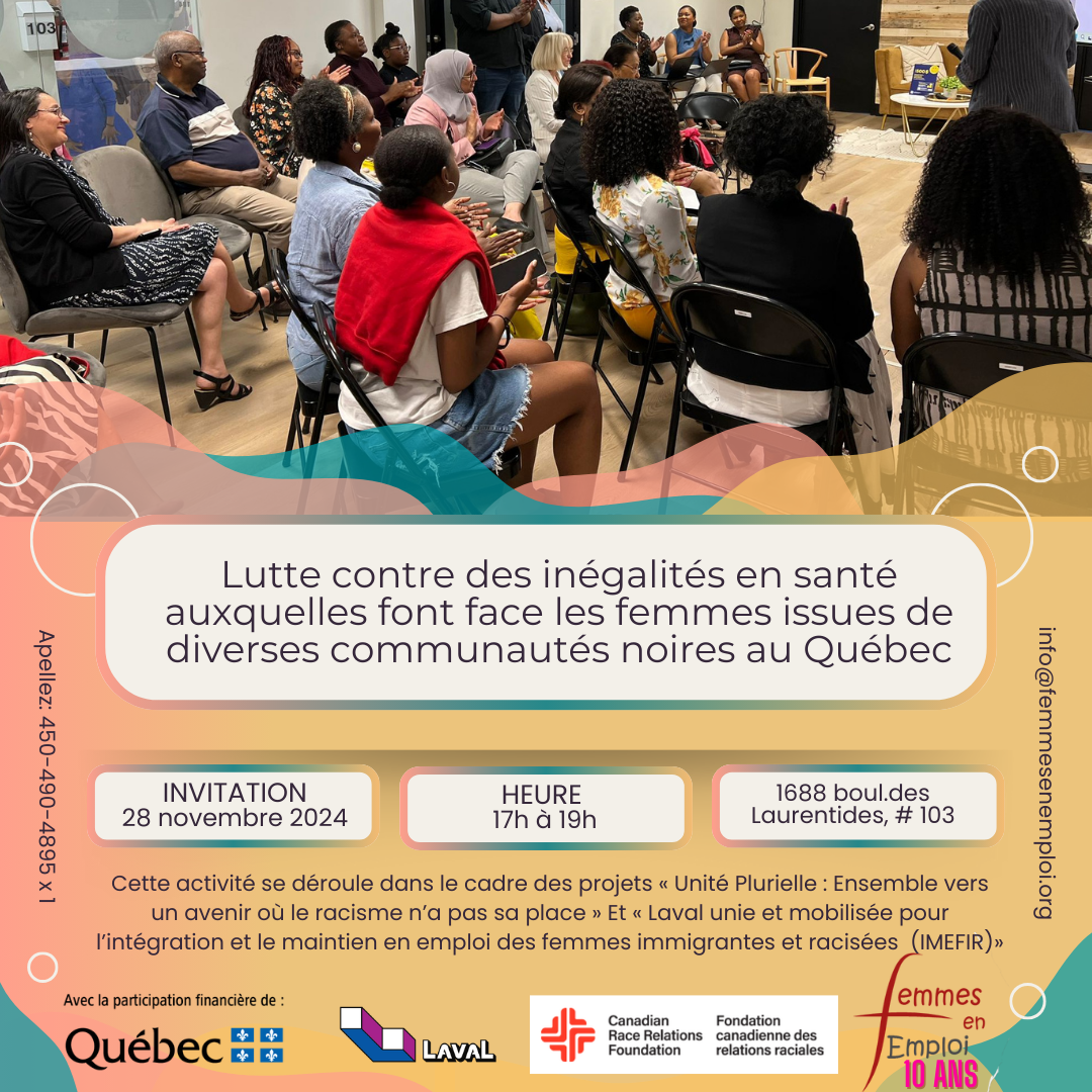 Cette activité se déroule dans le cadre des projets « Unité Plurielle : Ensemble vers un avenir où le racisme n’a pas sa place» et « Laval mobilisée pour l’intégration et le maintien en emploi des femmes immigrantes et racisées (IMEFI).