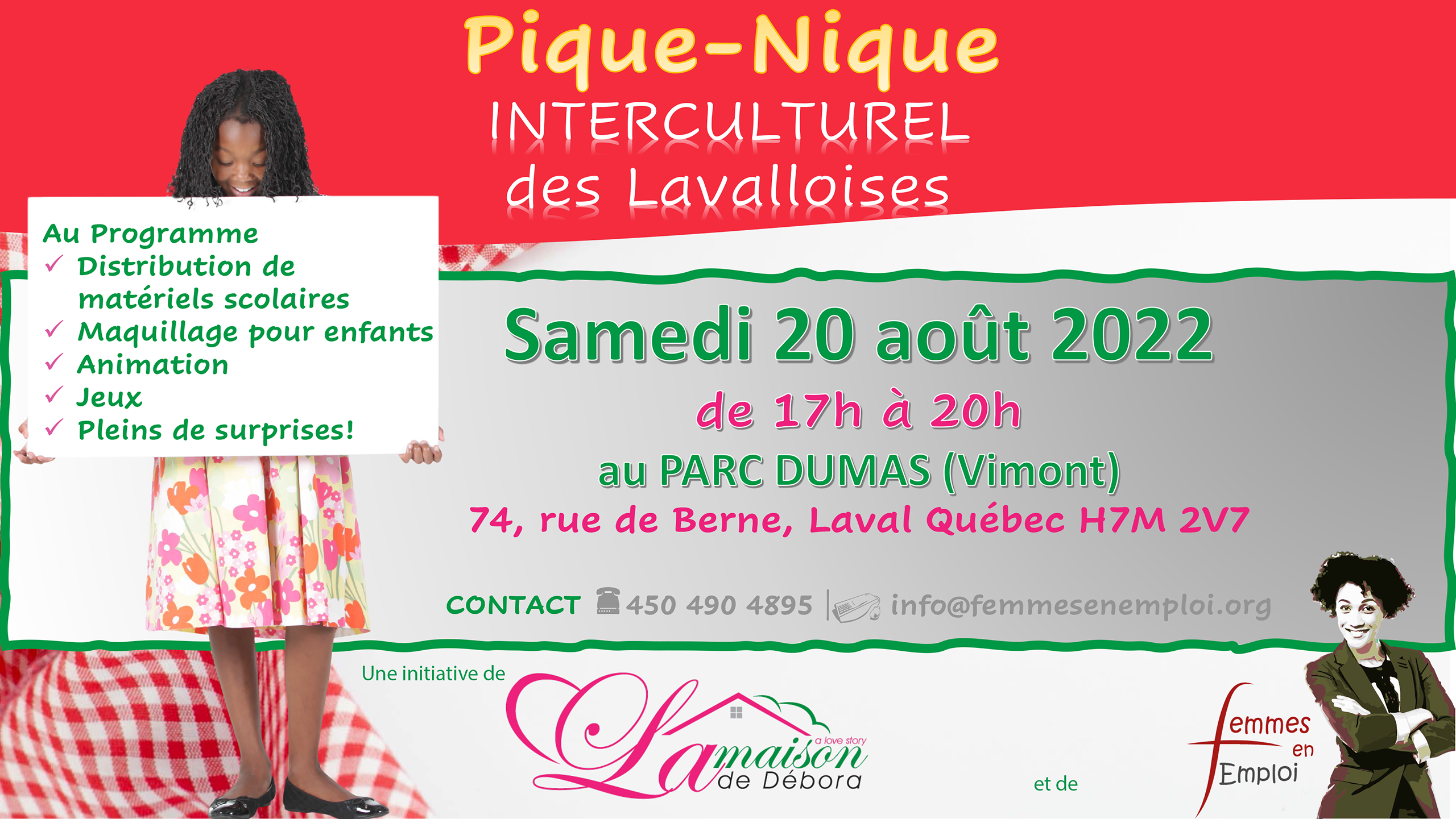 Une initiative de La Maison de Débora et de Femmes en Emploi qui aura lieu au Parc Dumas 1774, rue de Berne